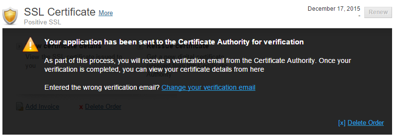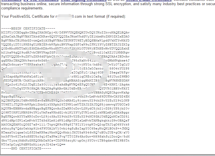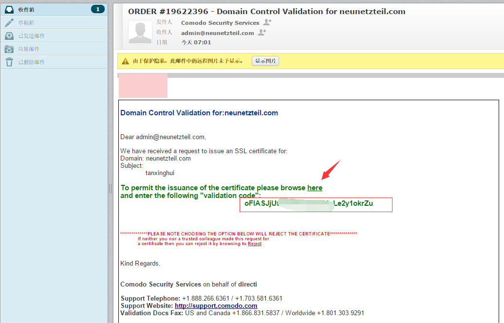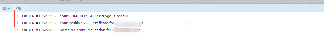 4.然后根据提示进行验证,验证成功后会收到两封邮件,点击Positive SSL的邮件,里面包含了CRT证书。