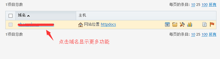 模式有两种:活动列表模式和经典列表模式。活动列表就是默认的,大家如果操作指定域名下的更多功能,需要点击“显示更多”那里的倒三角按钮;而且经典列表模式时需要点击域名才能显示这些功能: