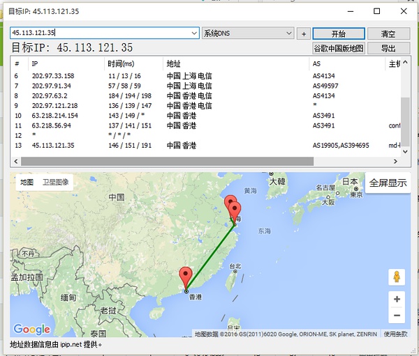SoftLayer香港机房路由追踪