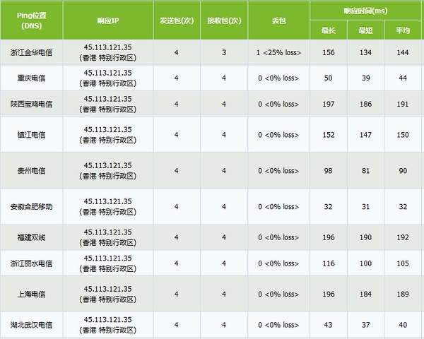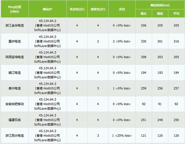SoftLayer香港机房PING数据