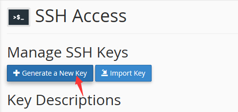 3. 可以看到有“Generate a Ner Key”和“Import Key”,后者是导入密钥,我们选择“Generate a Ner Key”建立新密钥;